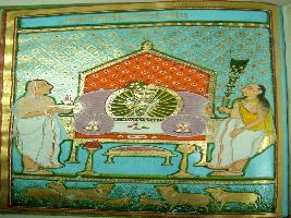 | Description / विवरण | Miniature painting depicting Shri Nandnitsi ji that worshipped by two attendants. |