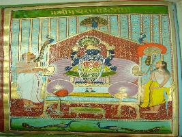 | Description / विवरण | Miniature painting depicting four armed Mathuranathji that followed by two attendants. |
