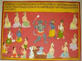 | Description / विवरण | Miniature painting based on Kashi khand. On the middle of the painting is depiction of Varaha, and he is surrounded by many human figures. |