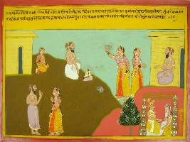 | Description / विवरण | Miniature painting based on Mahabharat - Ashwamegh parva depicting Saurabh sage is telling story about a Brahmani named Yashilapelli who got married to Udalak rishi and Udalak asks her to serve Agnihotra rishi to get son. |