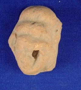 | Description / विवरण | Terracotta human head having beautiful head gear. Its right eye is having a hole. Other features of face is slightly rubbed off. |