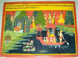 | Description / विवरण | Miniature painting based on Harivansha depicting scene of Raas Lila, in which Radha and Hari hugging each other. |
