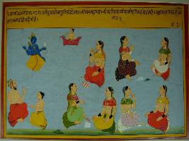 | Description / विवरण | Miniature painting based on Kashi khand depicting lord Vishnu and Dhruv on the to right corner and few ladies are seen seated on the other part of the painting. |