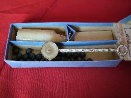 | Description / विवरण | This is a Georgian sealing set with three objects viz. a silver spoon, white wax and 27 green lac beads. |