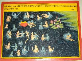 | Description / विवरण | Miniature painting based on Harivansha depicting Krishna with gopis in river enjoying the play. |
