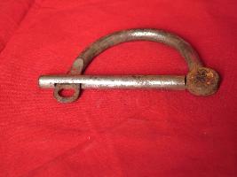 | Description / विवरण | It is a hand cuff of semi-circular shape. It has a straight bar with a groove in one end and the other end is fixed with the semi-circular iron bar. . |