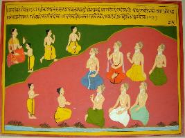 | Description / विवरण | Miniature painting based on Kashi khand depicting on the upper part a mother and child. On the lower part the child is depicted taking on gaining knowledge from different Gurus. |