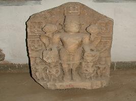 | Description / विवरण | This sculpture depicts a four armed god Surya carved in samabhanga, holding lotus bud in top two arms, while in two axamala and kamandalu. At the base of his feet Hayagriva, Danda, Pingala, Usha Pratyusha are carved out while small miniature all around. |