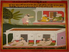 | Description / विवरण | Miniature painting based on Mullah-do-Piyaja depicting Akbar and Mullah-do-Piyaja talking. On the lower part four men are depicted indulged in unnatural sex. |