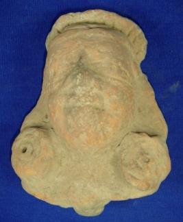 | Description / विवरण | Terracotta human head with beautiful head gear, prominent facial features and ear rings. |