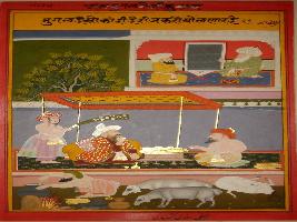 | Description / विवरण | Miniature painting based on Mullah-do-Piyaja. It depicts Mullah-do-Piyaja telling Akbar that Mughal eat goods like a butcher. |