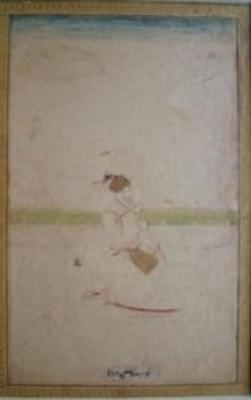 | Description / विवरण | The painting depicts Badshah Akbar, sitting on the throne-wearing tunic Jama, turban in Mughal style. There are four servants who are surrounding him. One of who is behind Akbar, other is standing in front of him & one is the lady, who is also standing. There is one more person, well dressed having dumb in his hand. Two deer are setting in front of him. The painting is made with pencil but the background is with watercolour containing, trees, plants rivers & sky. The border of the painting is decorated with golden colour in a floral manner. |