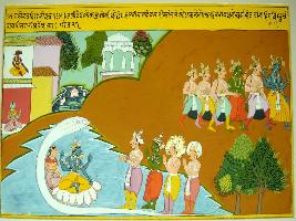 | Description / विवरण | Miniature painting based on Ekadashi Mahatmya depicting Ekadashi of Migsar month depicting all Devtas came to Vishnu and later they moved with Vishnu to fight with demons towards Chandravati. |
