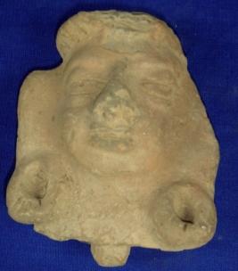 | Description / विवरण | Terracotta human head having prominent facial features and wearing round earrings. |