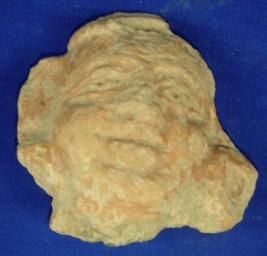 | Description / विवरण | Terracotta human head with open incised eyes and open lips. It is having an elaborate hair style. Part of face is slightly rubbed off. |