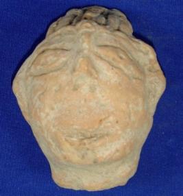 | Description / विवरण | Terracotta human head having prominent eyes. Other features are rubbed off. |