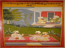 | Description / विवरण | Miniature painting based on Mullah-do-Piyaja. It depicts Mullah-do-Piyaja is telling Akbar that, the people of Lahore are liar. |