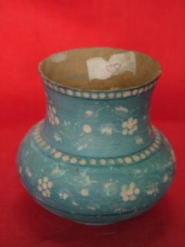 | Description / विवरण | Pot or lota with a small neck widening towards the mouth and decorated with white floral scrolls on the neck and belly portion. |