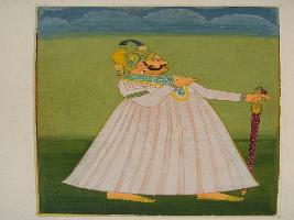 | Description / विवरण | It is a miniature painting of Maharaj Sawai Madho Singh ji, divided into three zones of fore middle and background. He is shown standing and holding a sword. Decorated with heavy necklace and earring, bracelet, he is shown pointing something.His crown has stylished feathers. |