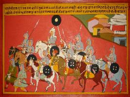 | Description / विवरण | Miniature painting based on Prithviraj Raso depicting marching of the army of Prithviraj Chauhan to fight with Ghauri. He is going ahead with seventeen thousand strong cavalry. |