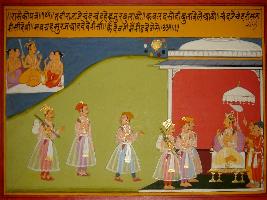 | Description / विवरण | Miniature painting based on Prithviraj Raso depicting Jaichand calling Kabalad Sodi to his court. It also depict Chandvardai coming to the court of Jaichand and saw his court like the court of nine planets. |