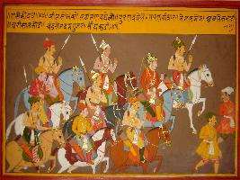 | Description / विवरण | Miniature painting based on Prithviraj Raso depicting Bhim Solanki, Puran Badhela, Lakshman Badhela, Achlesh Bhati, Chandrasen Gujar etc rulers are moving on horses in royal procession. |