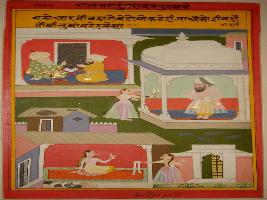 | Description / विवरण | Miniature painting based on Mullah-do-Piyaja. It depicts Mullah-do-Piyaja is telling Akbar that, the child of bad person also get hungry where ever he goes. |