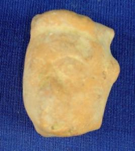 | Description / विवरण | Terracotta human head with head gear but facial features are rubbed out. |