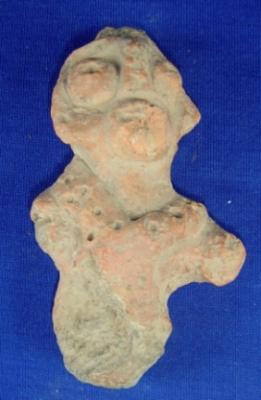 | Description / विवरण | Terracotta male figurine. The legs and hands are missing. The eyes, nose and lips are prominent. |