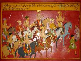 | Description / विवरण | Miniature painting based on Prithviraj Raso depicting a royal procession of Prithviraj that includes Vijayraj Vaghale, Chache Guhila, Lakshman Pawar, Langri Rai etc. |