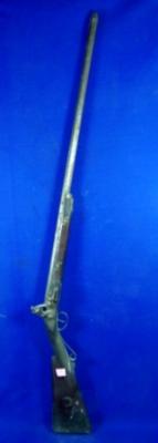 | Description / विवरण | Long single barrel muzzle loading gun with flint lock system. The butt is partly broken. The number 1809 engraved on the trigger. |