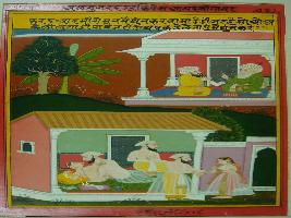 | Description / विवरण | Mullah and Akbar talking where Mullah says about the attraction of man or physical desire of man to a woman to loose his dharma. In the painting a man is forcing a woman. |