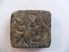 | Description / विवरण | It is an inscribed seal in square shape. In front of the seal some figure is engraved, now defaced and at the back 5 letters in Brahmi inscription has been written |