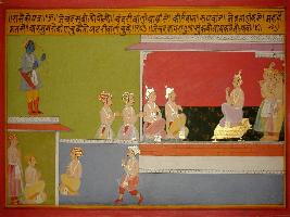 | Description / विवरण | Miniature painting based on Prithviraj Raso depicting the court of Jaichand where poet Chandvardai informing the king about the qualities of Prithviraj. The poet also says that Prithviraj is comparable to Arjun. |