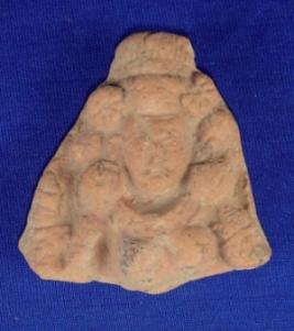 | Description / विवरण | Terracotta mother goddess, the body below chest is missing. She is wearing an elaborate headgear and profusely ornamented. The features are slightly rubbed out. |