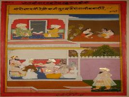 | Description / विवरण | Miniature painting based on Mullah-do-Piyaja. It depicts that medicines written by a kand Vaidya is like a manuscript written by fools. |