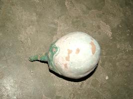 | Description / विवरण | It is a model of a brinjal, oval in structure, which is painted in white and green, is partially faded. |