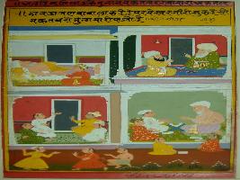 | Description / विवरण | Miniature painting depicting Mullah-do-Piyaja telling Akbar that after sending his son to Mullah his father thanks to God that Mullah had agreed to take him. |
