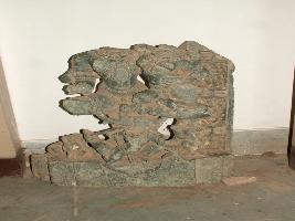 | Description / विवरण | This is a sculpture of Laxmi and Vishnu shown sitted on their vehicle Garuda. All figures are defaced and arms are broken. |