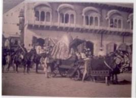 | Description / विवरण | This is marriage photograph black and white. In this photograph, the groom and barati are proceeding from the palace. In this photograph, Baghghi is shown with two axes. |