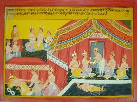 | Description / विवरण | Miniature painting based on Mahabharat - Vana parva. Depicting the five sons which are not comparable with Pandavas and all luxurious and lazy people. |