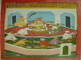 | Description / विवरण | Miniature painting based on Mullah-do-Piyaja. The painting depicts Mullah-do-Piyaja and Akbar sitting in the dinning table. Mullah refuses to take chicken than Akbar asked about it. Mullah says many reason. The painting depicts above mentioned story. |
