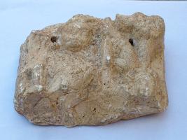 | Description / विवरण | It is a broken scupltural piece of Kamdev made in terracotta. The face and the torso of kamdev is seen in left hand. He is holding arrow and the other hand is holding a bow. The face of the deity is seen on the lower left part, rest missing. |
