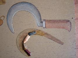 | Description / विवरण | It is a group of four microliths blades. The use of these microliths have been shown by displaying them with the picture of sickle. |