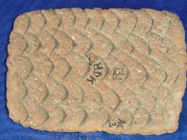 | Description / विवरण | Ill fired, terracotta scrubber, it is red from one side and black from another. It has incised dots impression. |