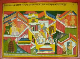 | Description / विवरण | Miniature painting based on Mahabharat - Vana parva. On the painting it is depiction of a battle camp seen where soldier are taking resting. |