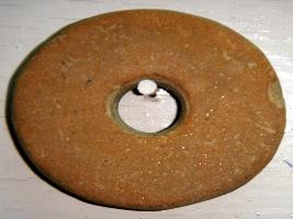 | Description / विवरण | Well fired terracotta scrubber with incised dot designs. Its edges are partly broken. |
