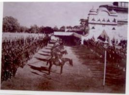 | Description / विवरण | In this photograph, the army of the king is shown. The soldiers are shown in their proper dress and weapons along with horses. They are arranged in a proper manner. Besides these, a building is also shown. |