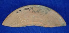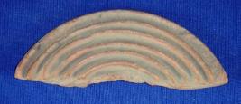 | Description / विवरण | Half portion of terracotta wheel having concentric circles on one side and 6 letters of Brahmi script on the other side. |