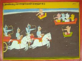 | Description / विवरण | Miniature painting based on Mahabharat - Vana parva. Demons are depicted coming for war with Gods. |